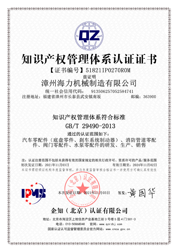 On November 3, 2021, obtained Intellectual Property Management System Certification