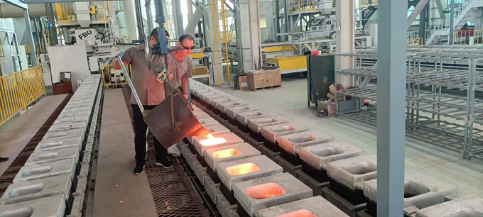 Pouring on the molten iron line
